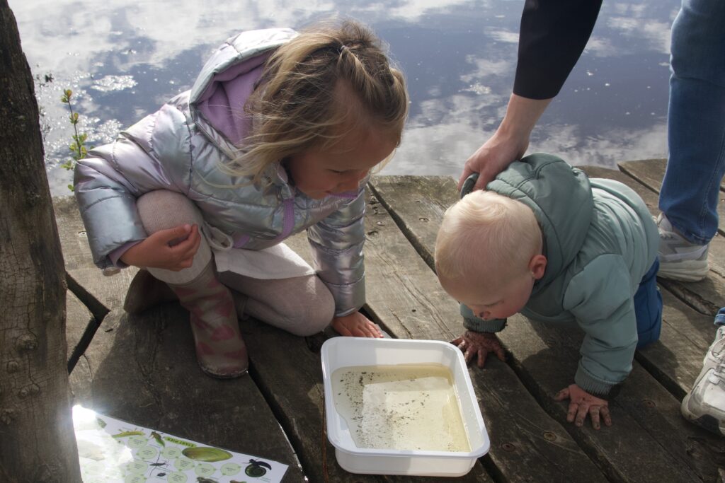 Uiteraard werd het water met de beestjes na afloop respectvol weer teruggegoten in het water van de speelnatuur. Een bij vertrek meegegeven bouwplaat van een sloot met leven biedt ouders en kinderen nog de kans thuis na te genieten.